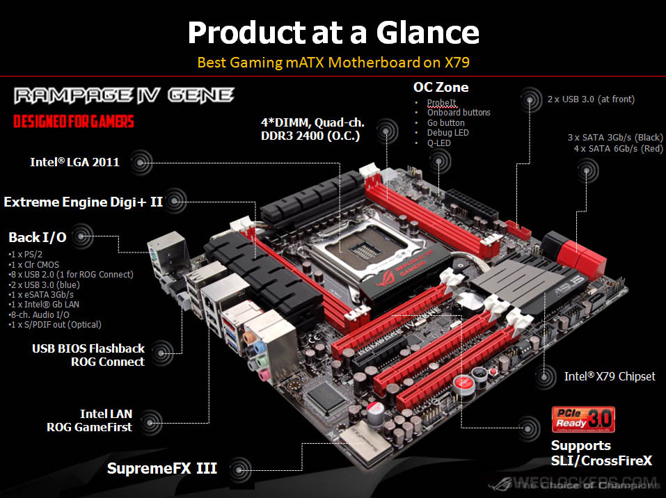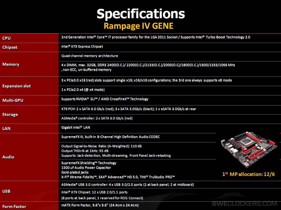 asus_logoAnnunciata già da tempo nella roadmap delle schede ROG, la Rampage IV Gene sarà la proposta Micro-ATX X79 di ASUS, un condensato di tecnologia per gamer ed overclockers. Questa scheda madre sarà dedicata alle CPU Core i7-3xxx di nuova generazione, note anche con il nome di Sandy Bridge-E.