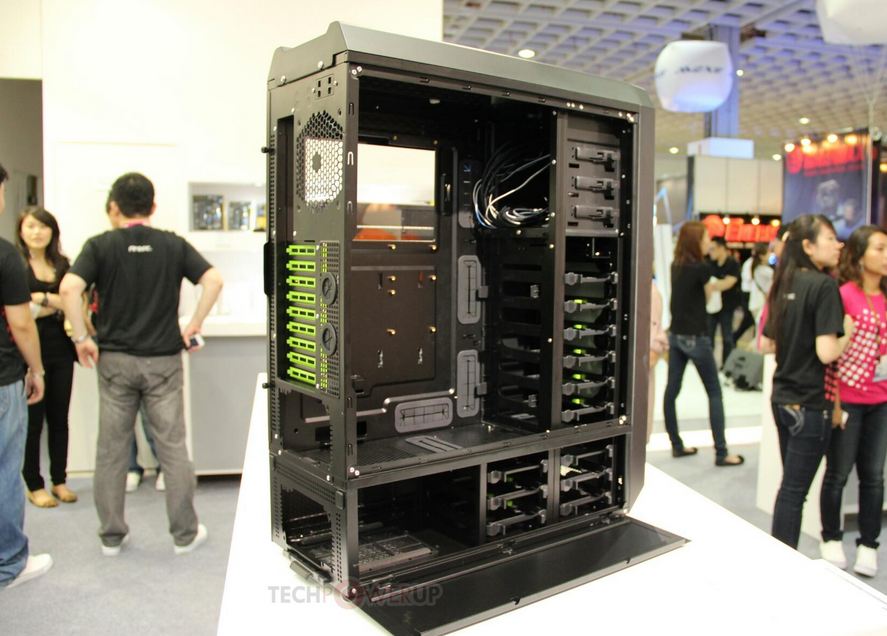 Ben 17 slot per gli hard disk, un quantitativo veramente impressionante, ma è soprattutto il telaio in alliminio da 0.8mm a far comprendere che è stato creato per dare lustro a questo importante marchio. E' possibile installare ben due PSU ed è inutile far presente che sotto il punto di vista del raffreddamento è molto avanzato perché include tre ventole da 120mm frontali in immissione, due in espulsione superiori da 120mm che possono essere usate per radiatori da 240mm, due interne da 120mm per il ricircolo d'aria ed una posteriore da 120mm.