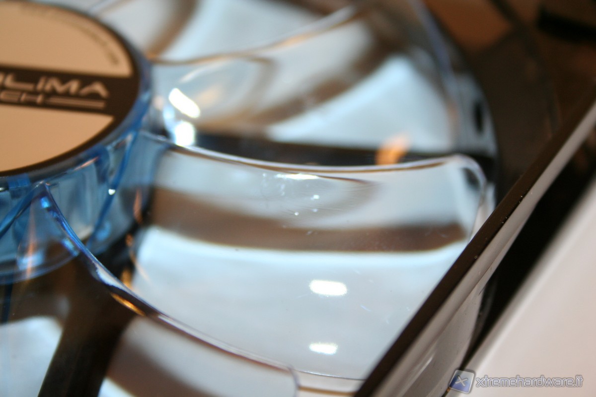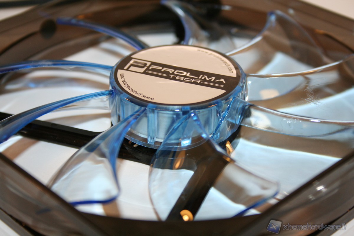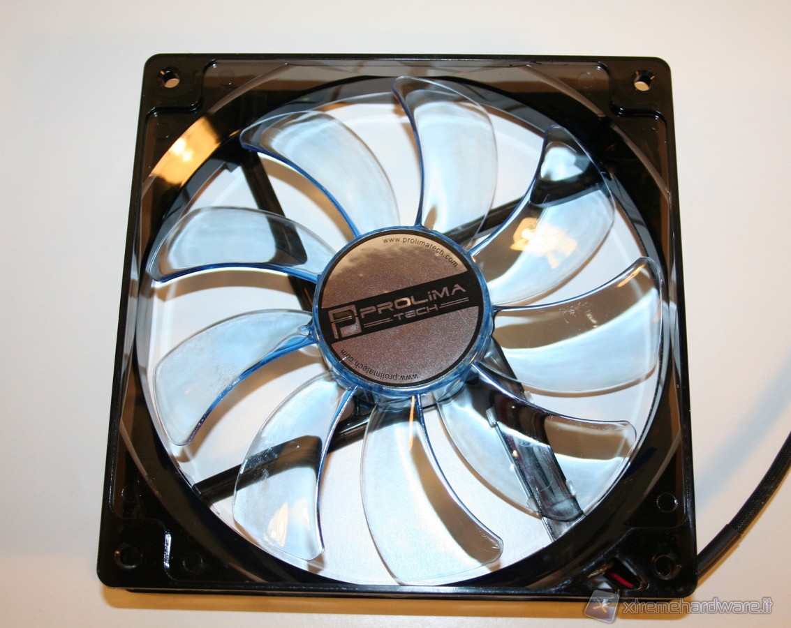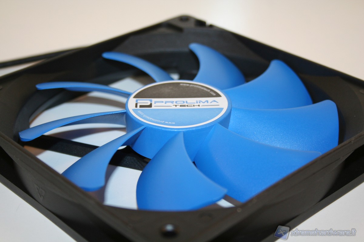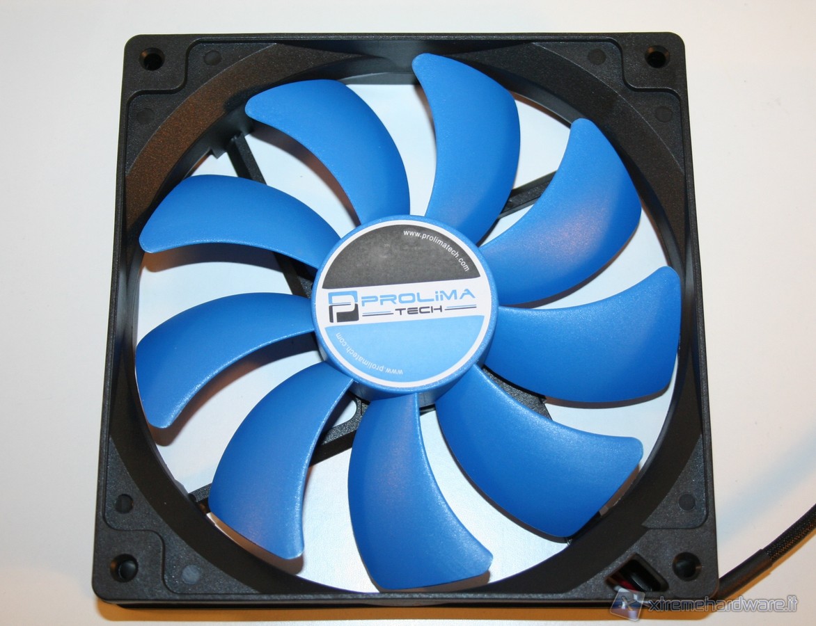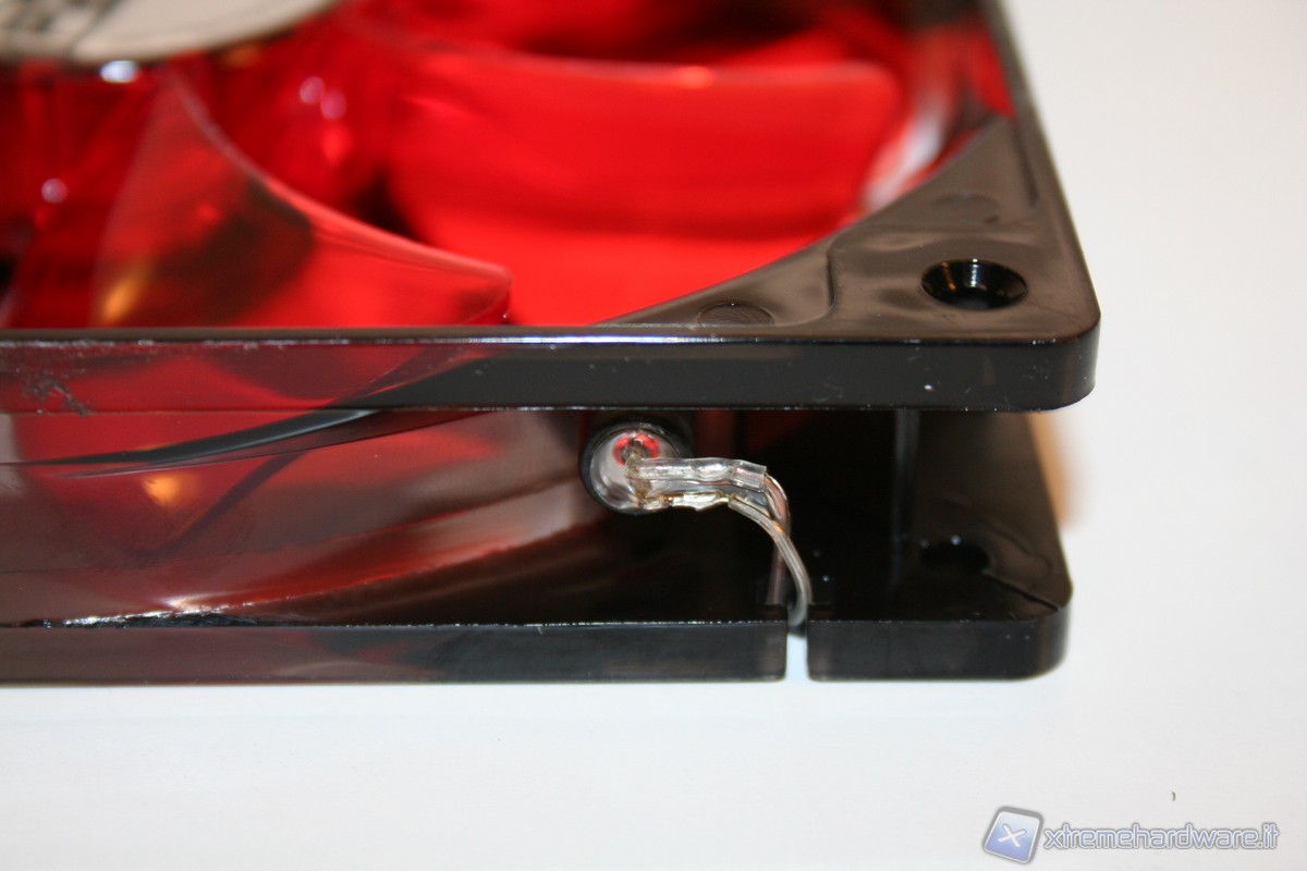 Anche qui la struttura in ABS conferisce un’eccellente solidità strutturale, sebbene però la concezione sia ugualmente classica, a nove pale e senza particolari motifi funzionali proprietari. Lo spessore appunto è standard, però anche qui siamo dinanzi ad un valore di CFM molto elevato per una ventola da 140mm, ma soprattutto ad un rapporto tra dB emessi e CFM molto buono; la rumorosità è bassa e non serve un riduttore. La velocità di rotazione è 1000RPM più o meno 100RPM ed il consumo è pari a 2.4W quindi sarà possibile alimentarla da moltissimi fanbus in commercio, senza il minimo problema.