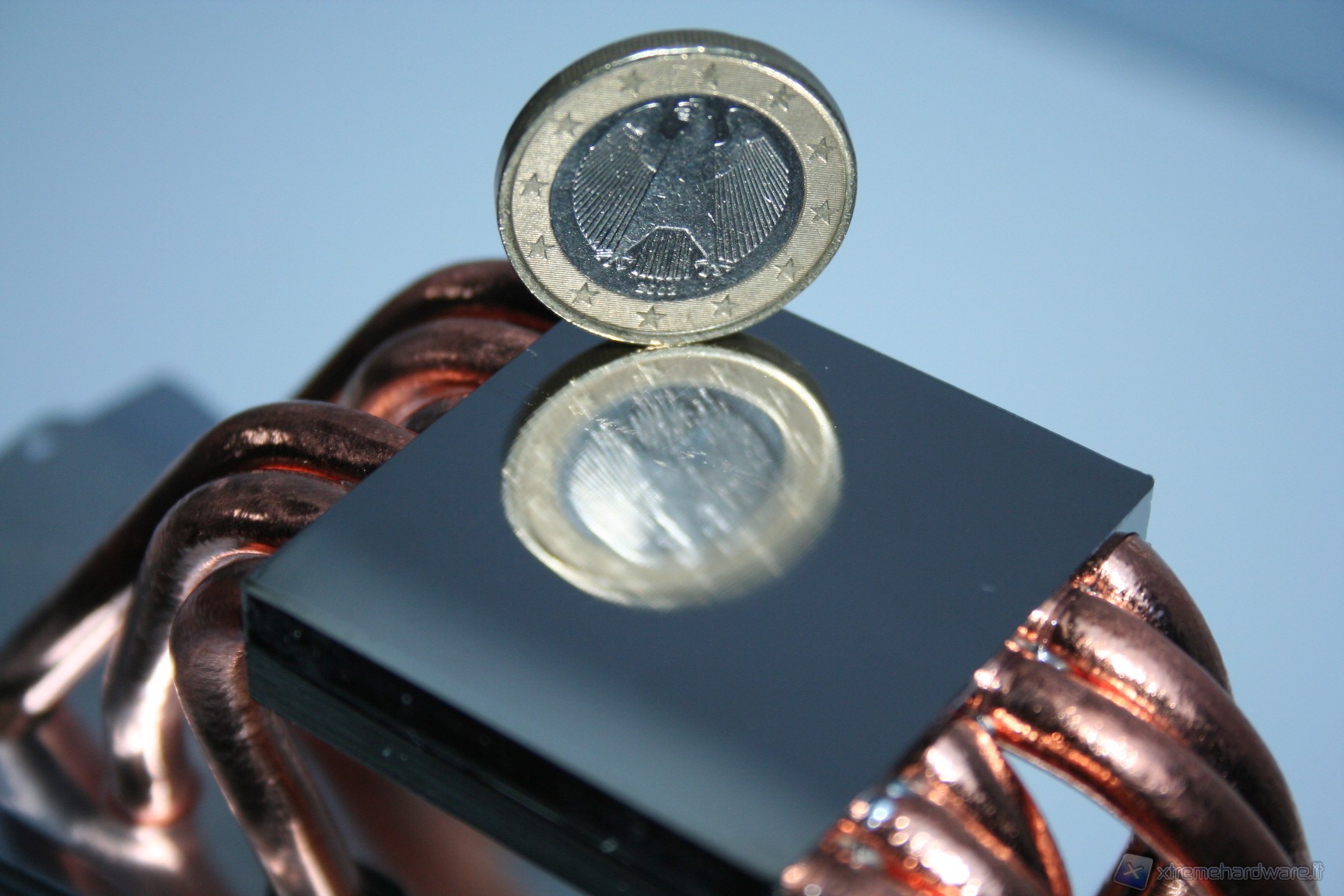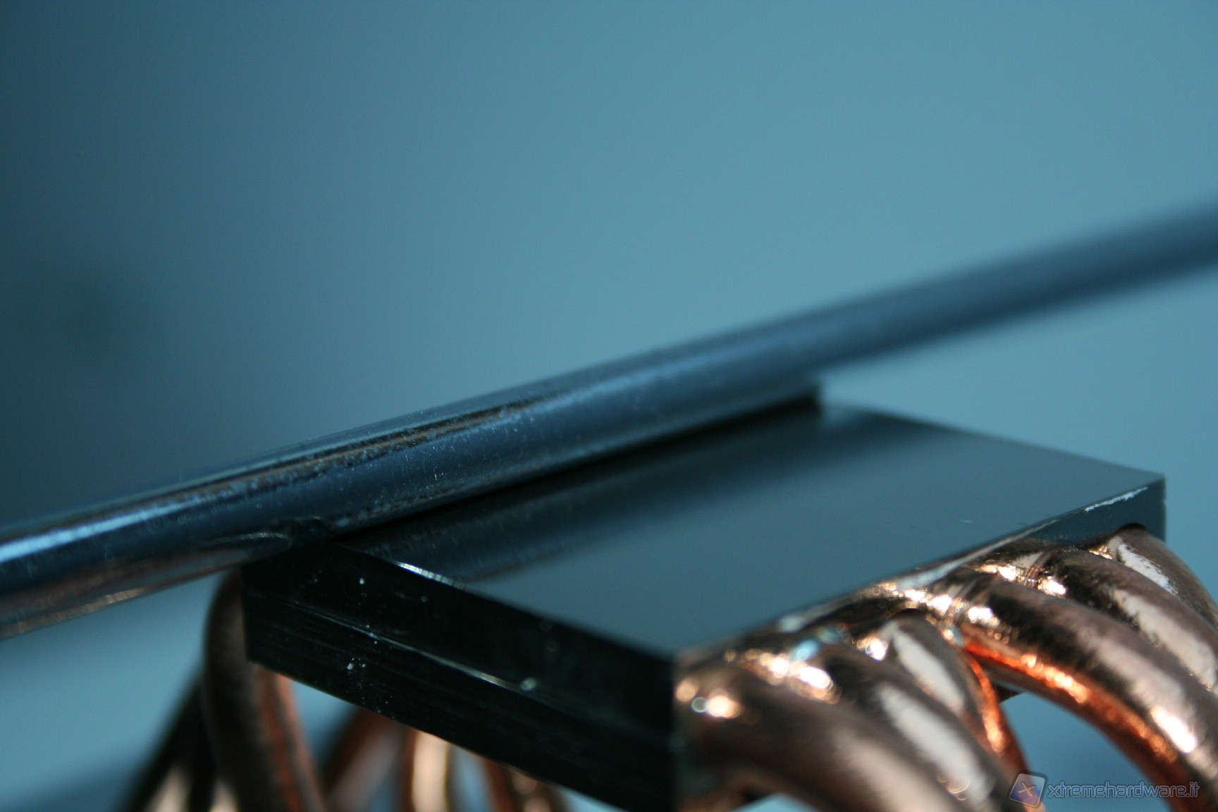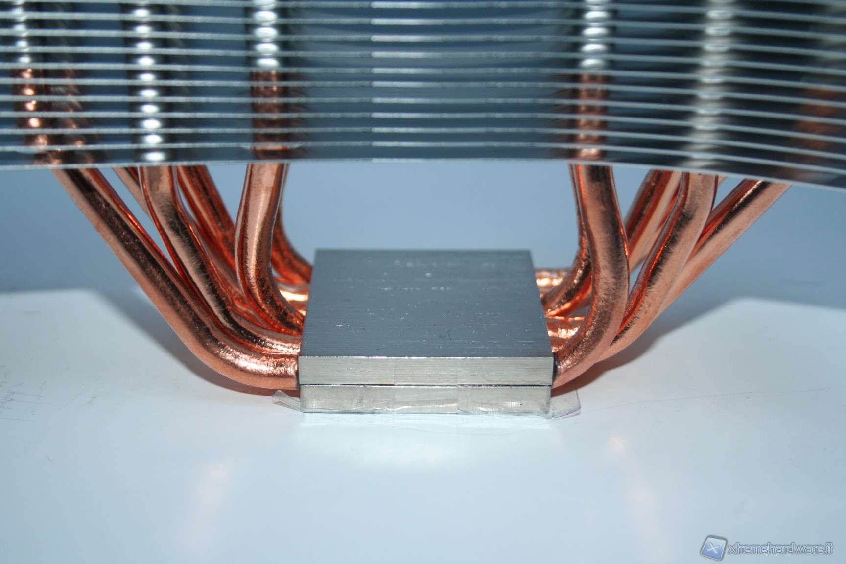 Ci sono 50 alette in alluminio e 6 heat pipes in rame con diametro di 6mm, con struttura ad “U”. La base è in rame con finitura al nichel. Rispetto al TRUE Spirit 120 guadagna due heat pipes, il che significa che otterremo temperature leggermente migliori, anche per via delle dimensioni complessive di poco superiori. E’ ottima la saldatura delle alette sulle heat pipes e la finitura della base è di ottimo livello. Anche l’assemblaggio è molto buono e permette di conferire un’ottima zona di contatto tra la base e le heat pipes saldate su di essa.