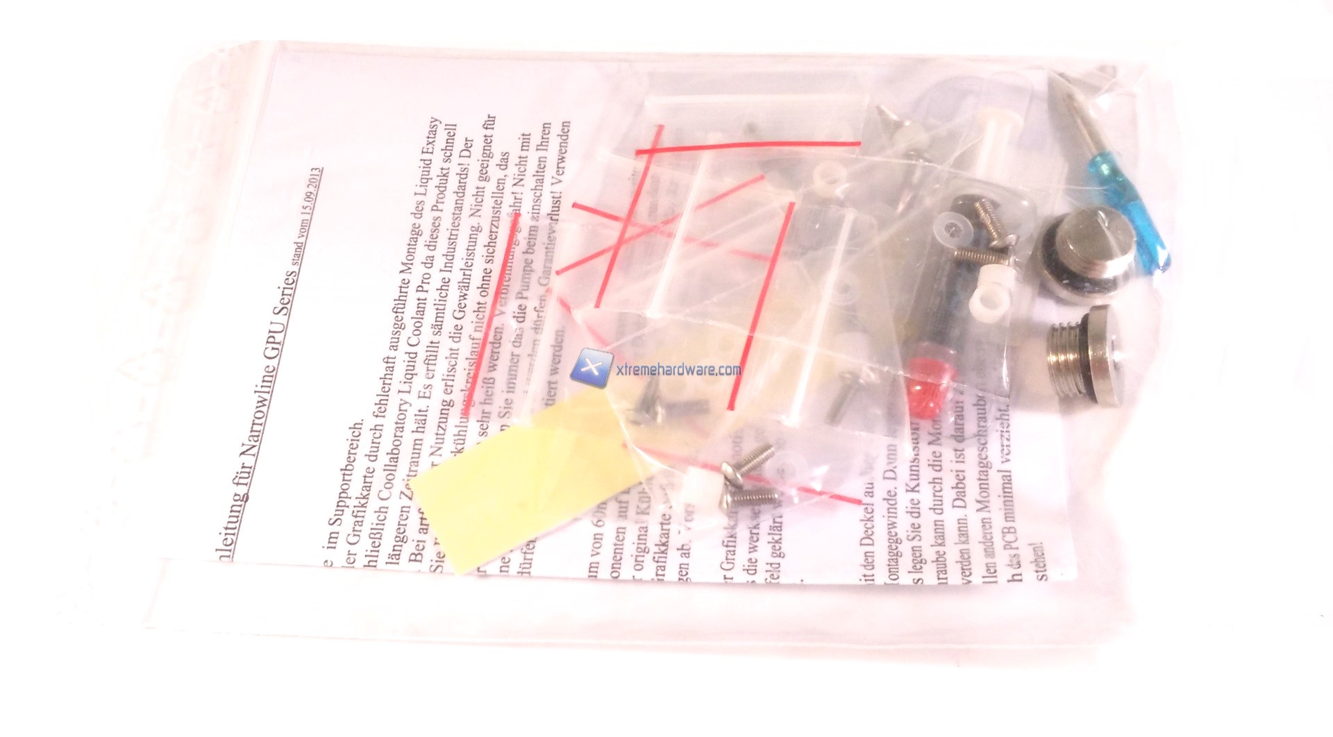 Il bundle contiene inoltre un foglio con le istruzioni di montaggio (in tedesco) e un’immagine stampate che mostra dove mettere i pad termici.