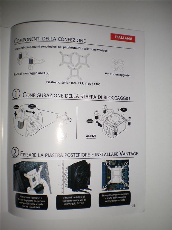 Completano il tutto viti di fissaggio e manuale di istruzione scritto in diverse lingue, corredato da immagini ben realizzate e facili da capire. Sottolineiamo la presenza della lingua italiana, molto utile per capire l'uso del display e delle sue funzioni principali.