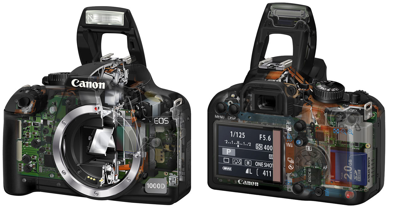 Benché sia una entry level la 1000D dispone di tutte le dotazioni dei modelli di fascia più alta come: l’innovativo sistema di pulizia del sensore EOS ICS, la modalità Live view per la ripresa della scena attraverso il monitor, oltre alla possibilità di comandare lo scatto attraverso il PC con una connessione USB 2.0, utilizzata anche per il trasferimento dei file.