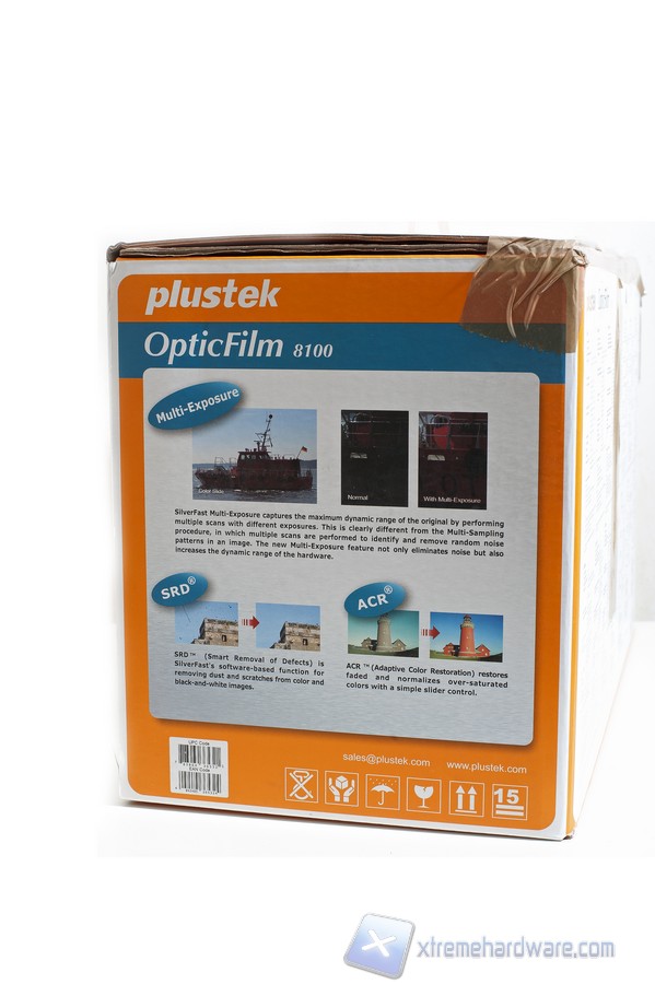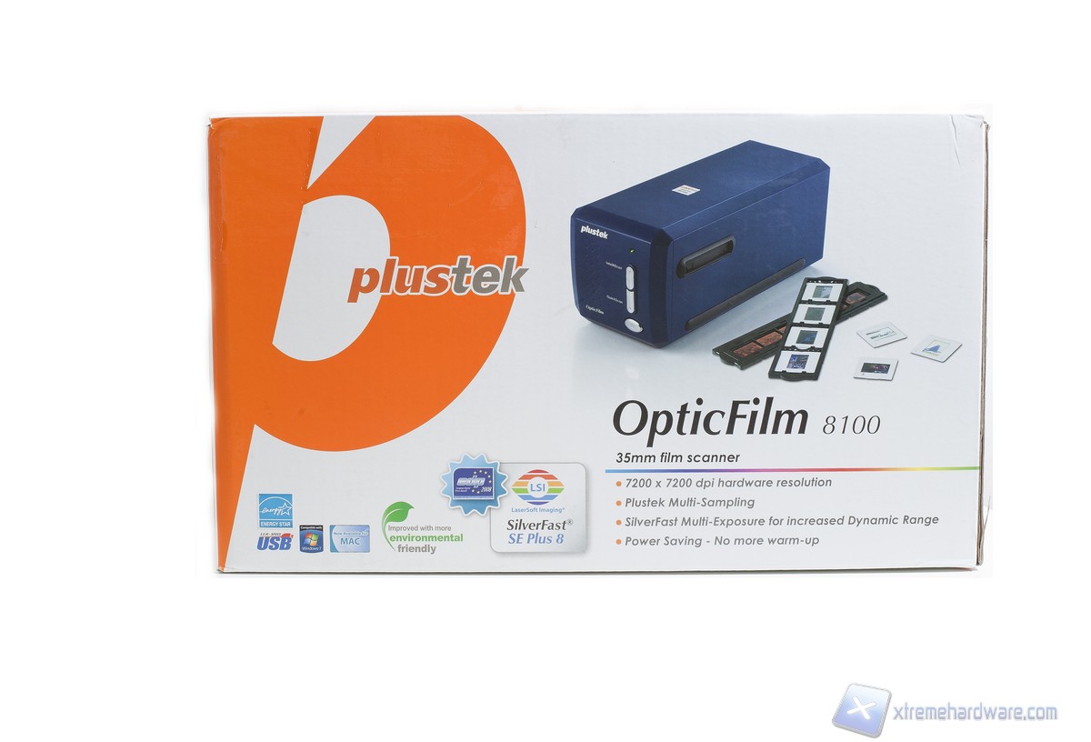 Una scatola rettangolare racchiude il prodotto. Nella parte frontale troviamo impressa un'anteprima dello scanner e alcune sue caratteristiche in lingua inglese. Ai lati troviamo alcune feature presenti nel software SilverFast8.