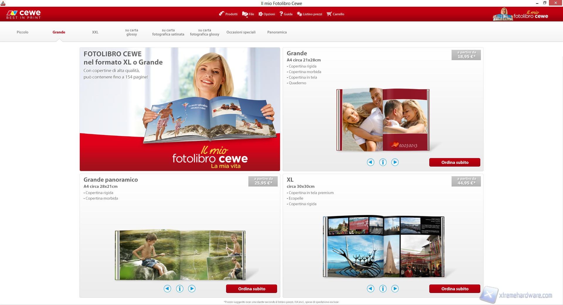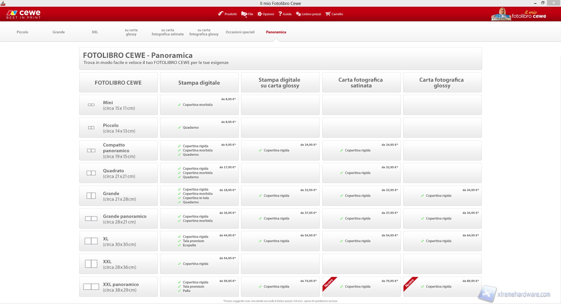 L'ultima voce, "panoramica", permette invece all'utente di dare una rapida occhiata a tutti i formati disponibili, ed a tutti i prezzi relativi al formato e al tipo di carta scelta, il tutto riportato in una comoda tabella facile da consultare.