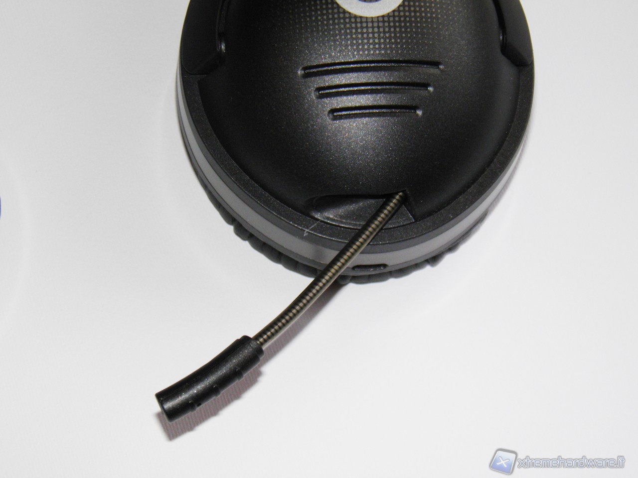 Ottima la scelta di SteelSeries di dotare queste cuffie di un microfono a scomparsa. Esso è presente sempre nel lato sinistro (L) della cuffia, nascosto dentro la cuffia per renderle più gradevoli all'occhio quando non lo si usa. Basterà tirarlo all'esterno nel momento del bisogno per essere pronti ad utilizzarlo, inoltre, l'asta del microfono flessibile permettere di posizionarla come meglio si ritiene.