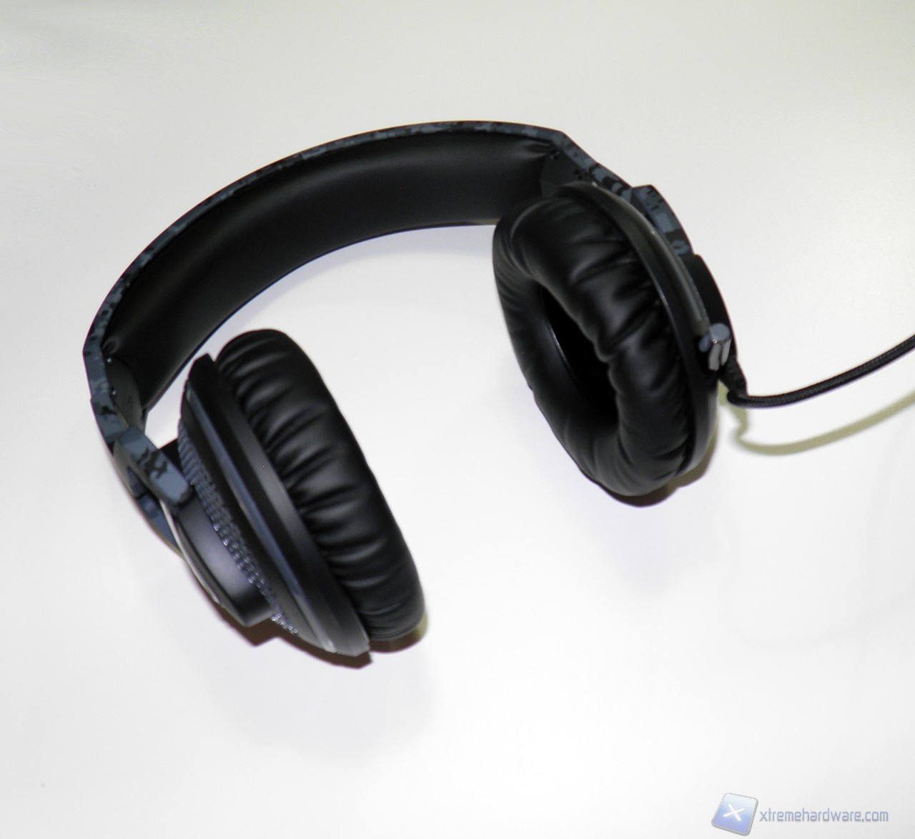 Le ASUS Echelon sono decisamente pregiate ad un primo contatto, la finitura Camo che caratterizza questo nuovo modello, oltre ad essere bella esteticamente, è leggermente gommata e quindi molto piacevole al tatto. Anche qui troviamo due inserti metallici sui padiglioni molto belli da vedere.