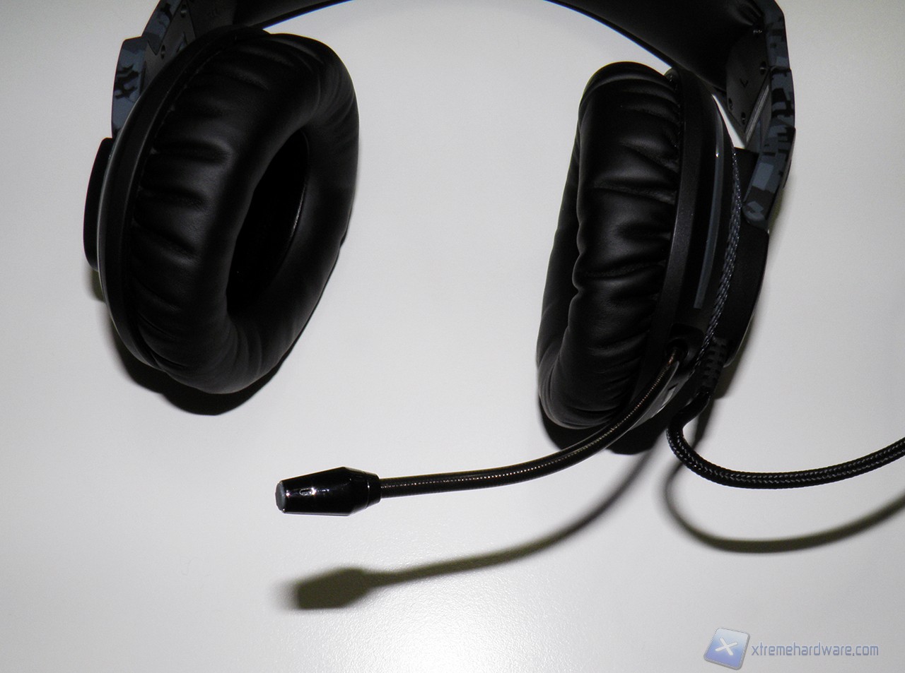 Sempre sul lato sinistro, come possiamo osservare, parte il cavo unilaterale che connette microfono e driver, tramite jack da 3.5mm, alla fonte audio. L'estensione delle cuffie è supportata dall'archetto interno metallico decisamente flessibile. Non sono possibili rotazioni trasversali dei padiglioni.
