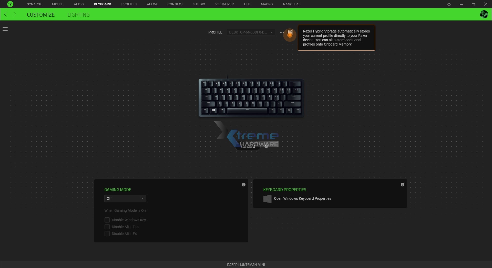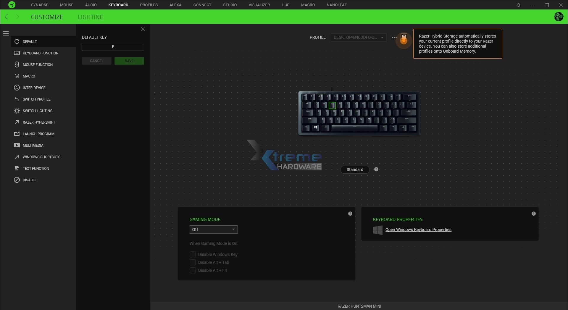 Una volta che avremo eventualmente personalizzato il tutto potremo creare e salvare il profilo. La Razer Huntsman Mini ci permette di creare fino a 5 Profili e salvarli in modo ibrido PC/Tastiera.