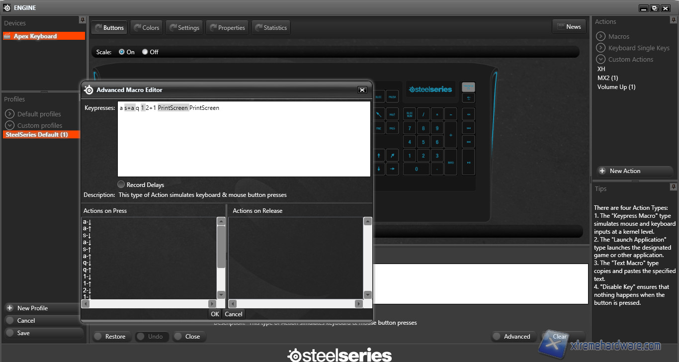 Per ogni tasto è possibile definire la macro (conservando o meno i tempi di ritardo), lanciare programmi, generare testi o disabilitare il tasto.