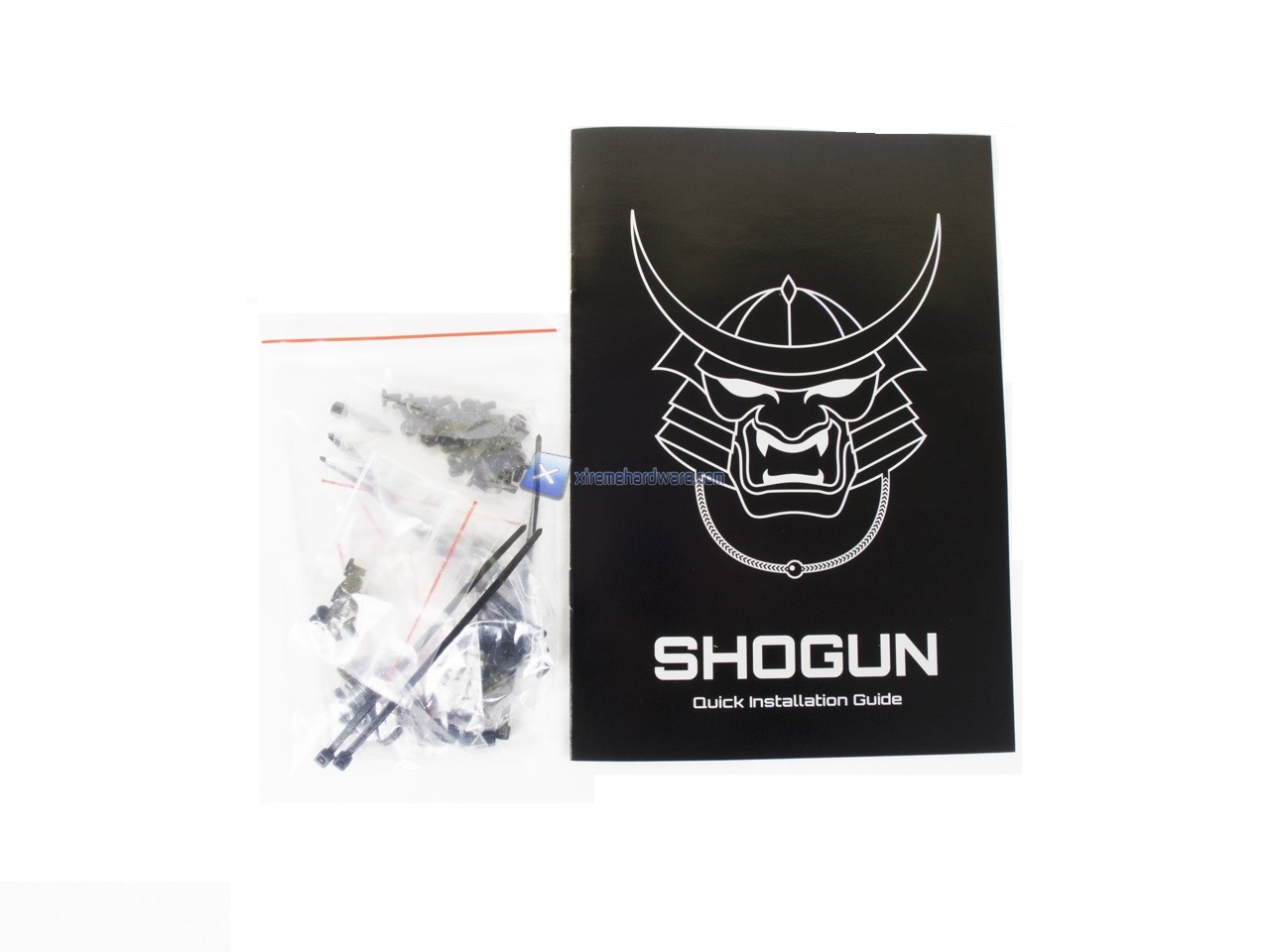 Il BitFenix Shogun ci verrà consegnato in una classica confezione di cartone riciclato sulla quale è riportata frontalmente il volto di uno Shogun mentre posteriormente le principali caratteristiche e dettagli. Ulteriori informazioni sono presenti ai lati. La confezione è, vista la tipologia di case, di generose dimensioni e peso.