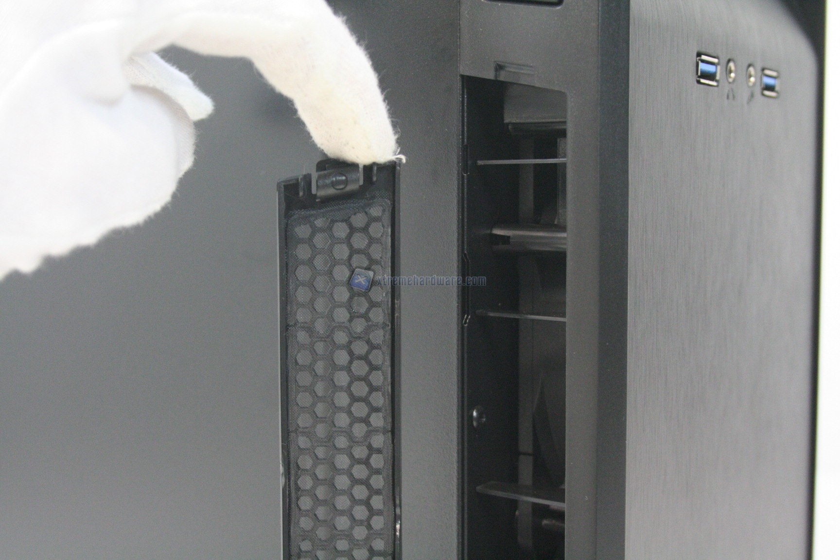 Lo spessore è basso ma la durevolezza notevole. La presenza del fonoassorbente è certamente un valore aggiunto, non di poco conto per un sistema simile. Lo scorrimento orizzontale della paratia sinistra è eccellente, quello della paratia destra invece, date le tolleranze ristrette al minimo, sarà leggermente problematico. Consigliamo di chiudere la paratia con il case poggiato lateralmente. Nonostante ciò però non sarà presente l’odiosa deformazione posteriore.