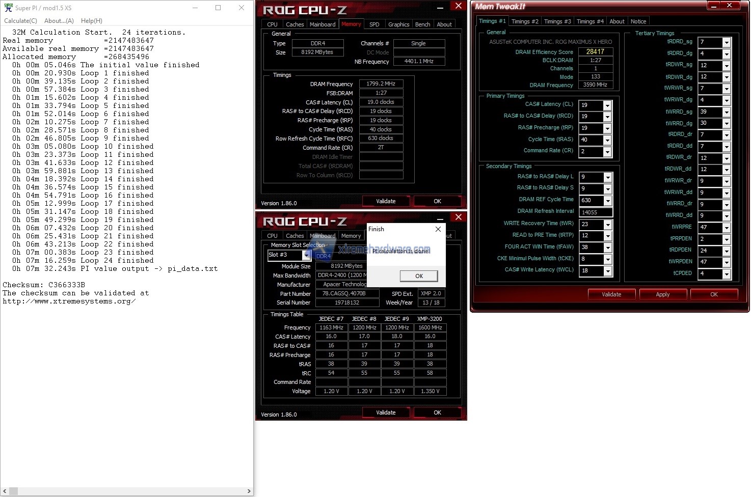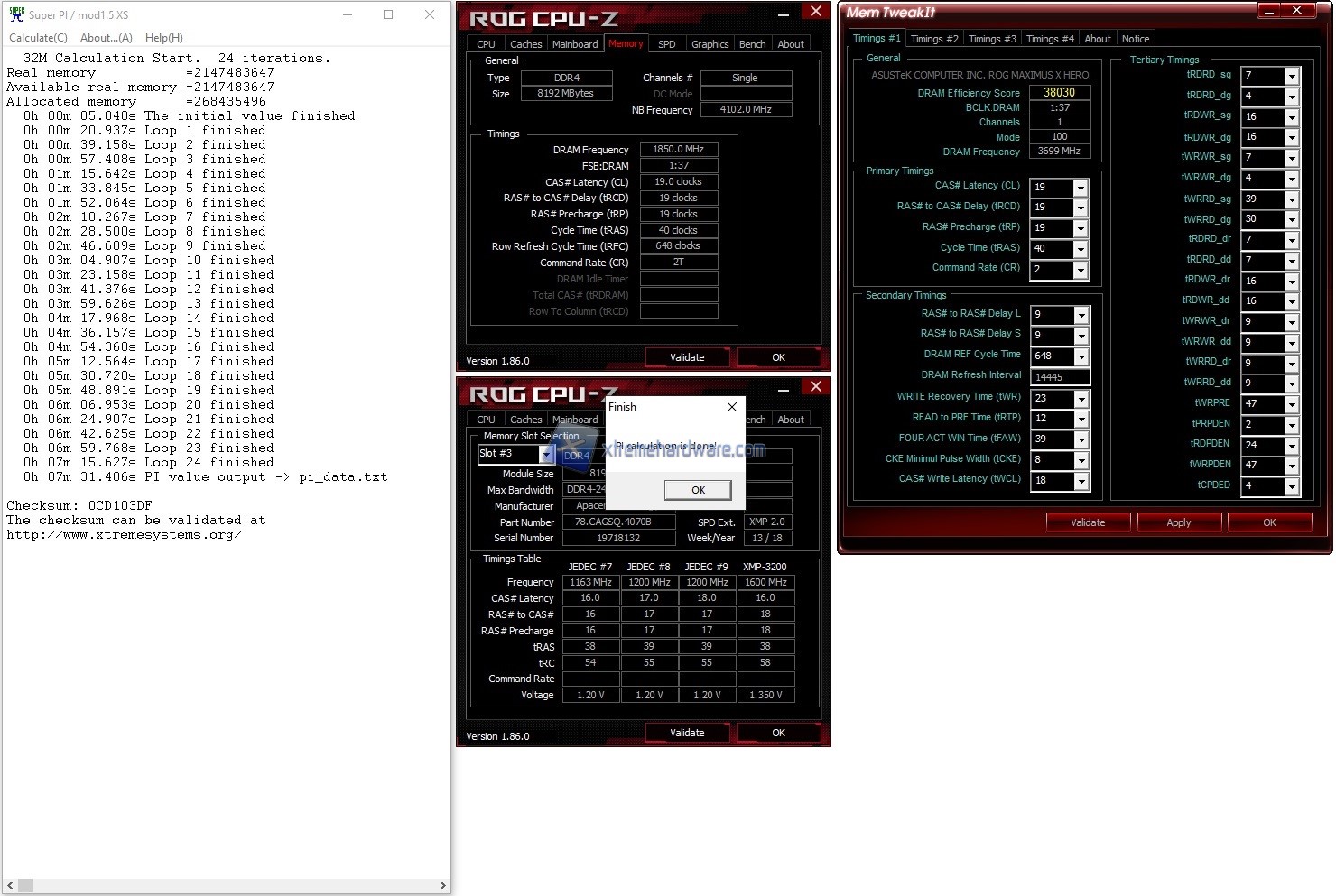 Apacer per le PANTHER RAGE RGB ha scelto di utilizzare gli affidabili e super conosciuti ICs Samung B-Die. Esattamente troviamo ICs con sigla K4A8G08WB-BCRC. Come possiamo osservare siamo riusciti ad ottenere un incremento di ben +500MHz (3700MHz) rispetto la frequenza in profilo XMP di 3200MHz.
