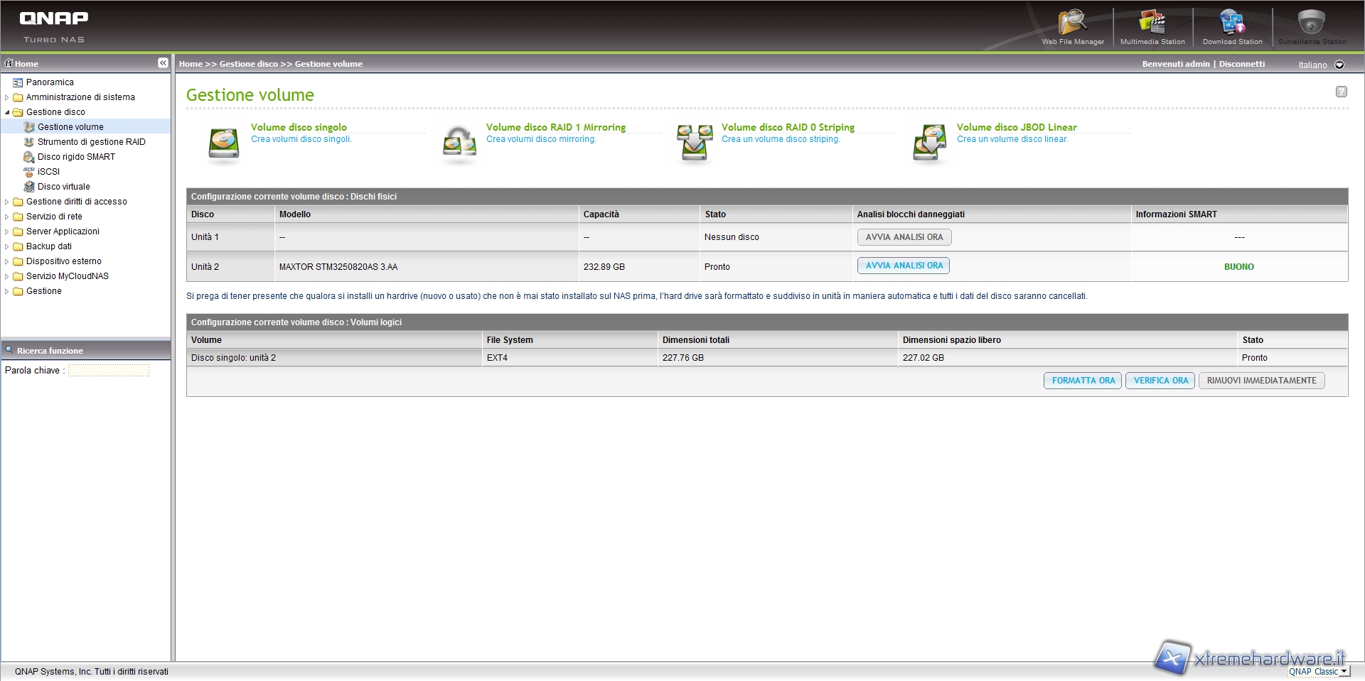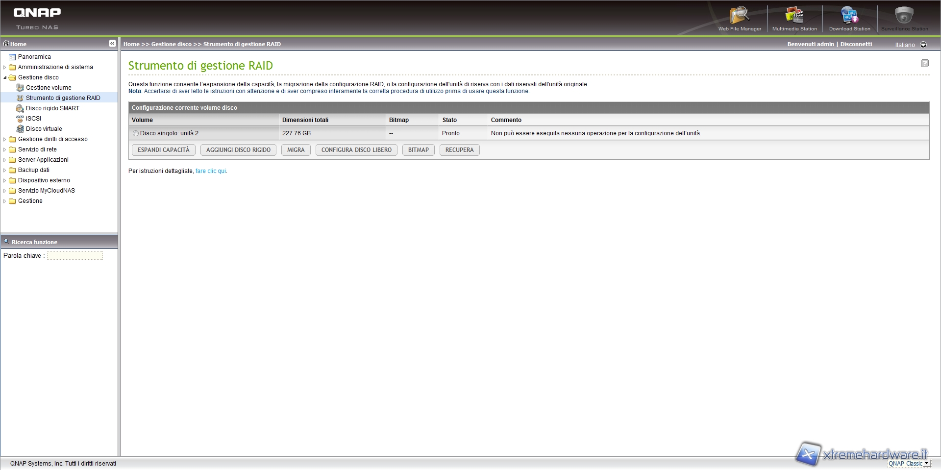 QNAP TS-219P II: qualità ed efficienza a portata di mouse - Amministrazione: gestione disco