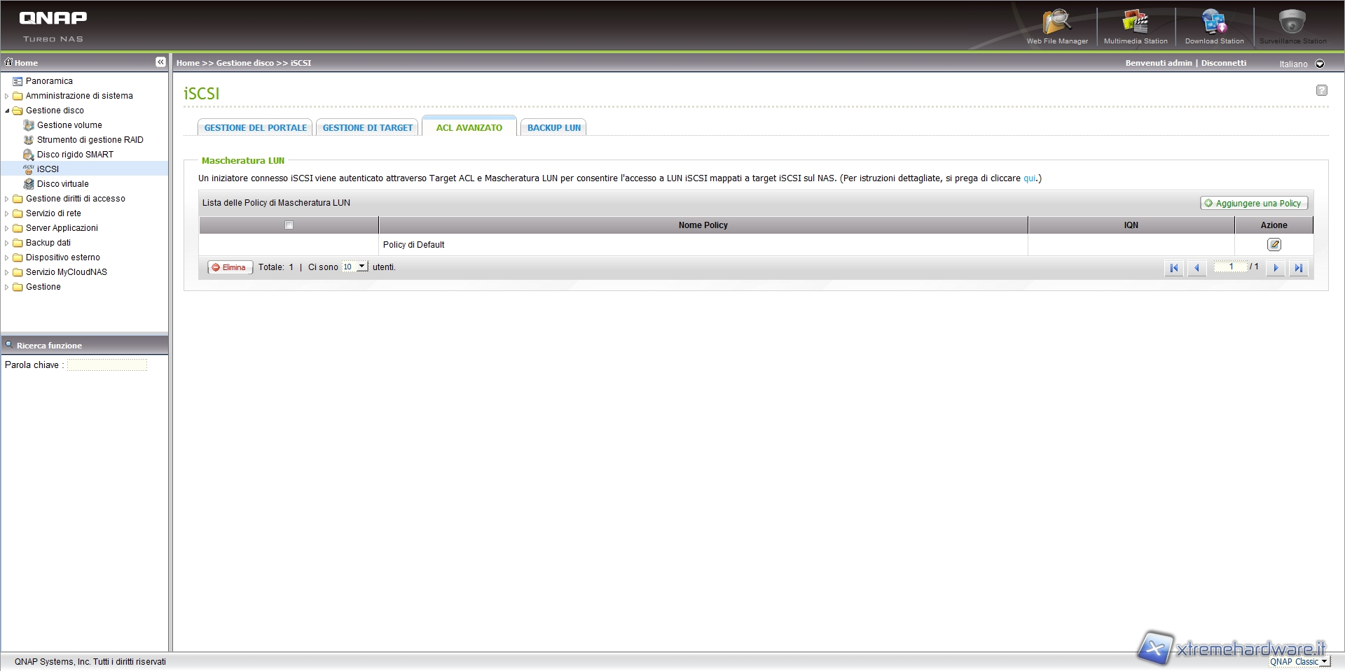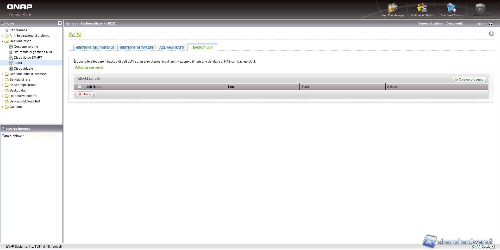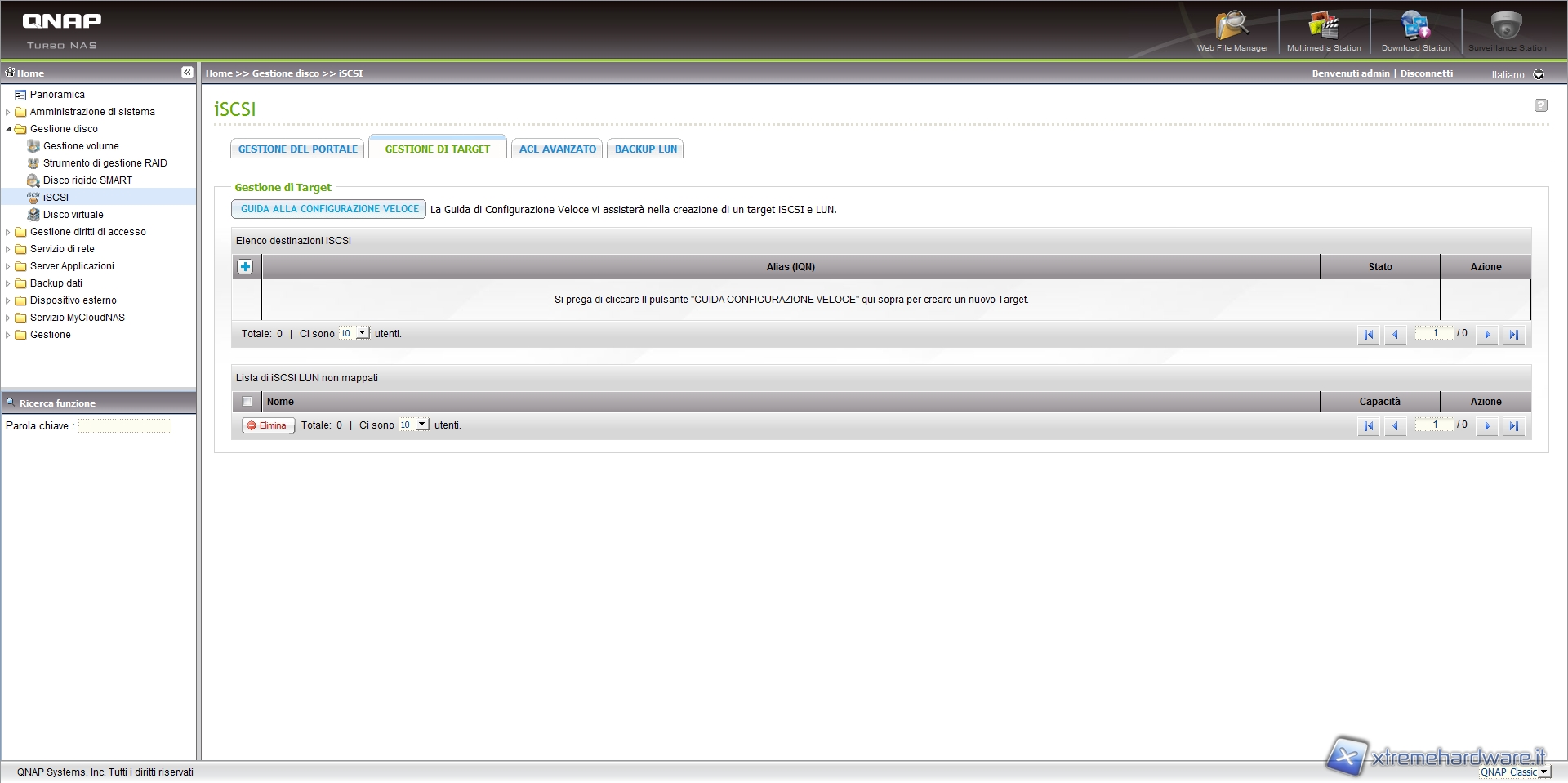 la funzione iSCSI permette l’allocazione di uno spazio definito sul disco all’interno del NAS il quale risulta essere visto come drive fisico dal computer che comunica con esso tramite protocollo iSCSI.