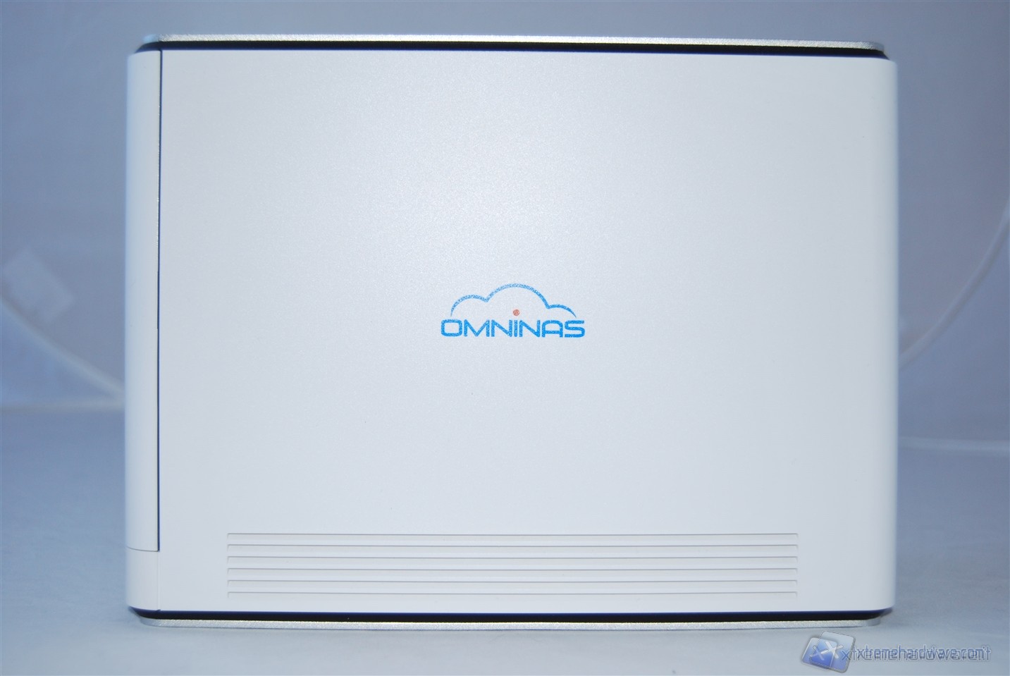 Sulla destra del nostro Shuttle OMNINAS KD20 troviamo stampato in blu il logo del prodotto mentre nella parte inferiore sono presenti delle feritoie in grado di far circolare meglio l’aria all’interno del case.